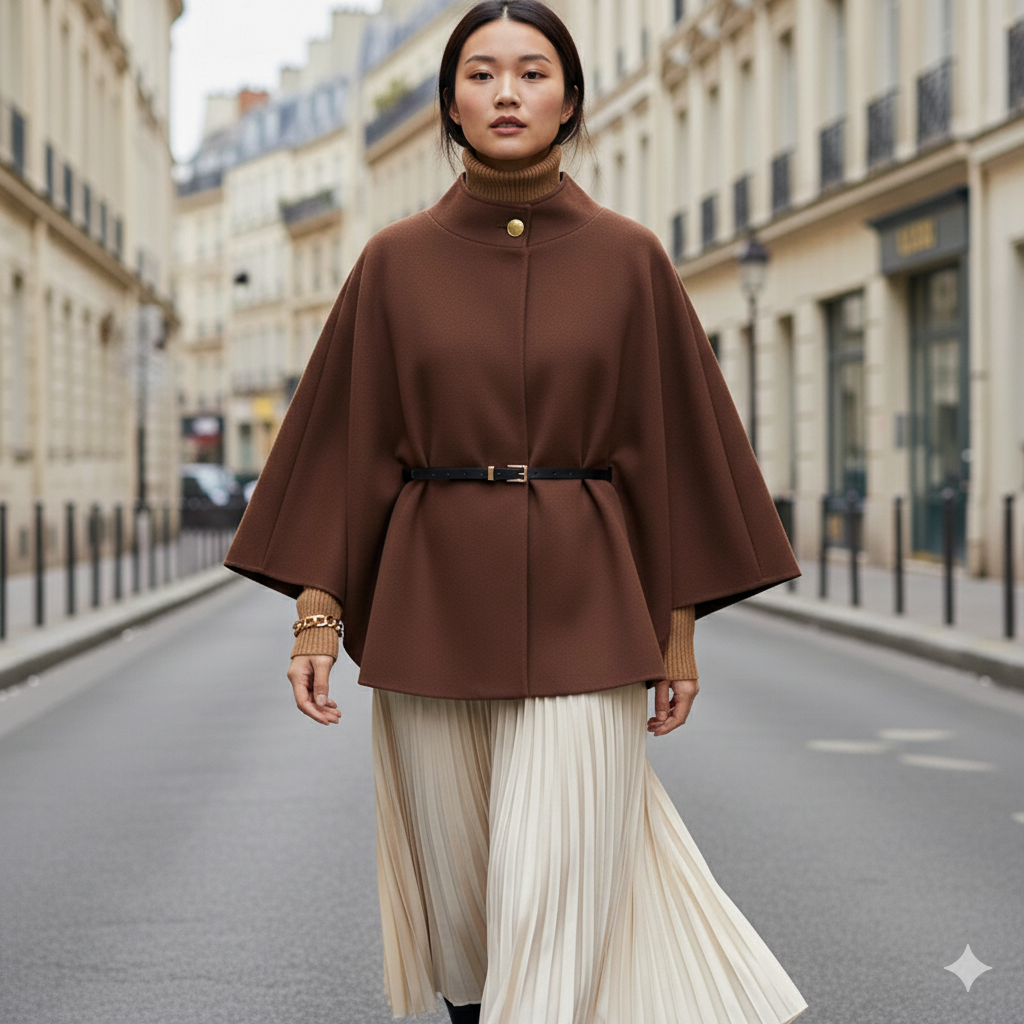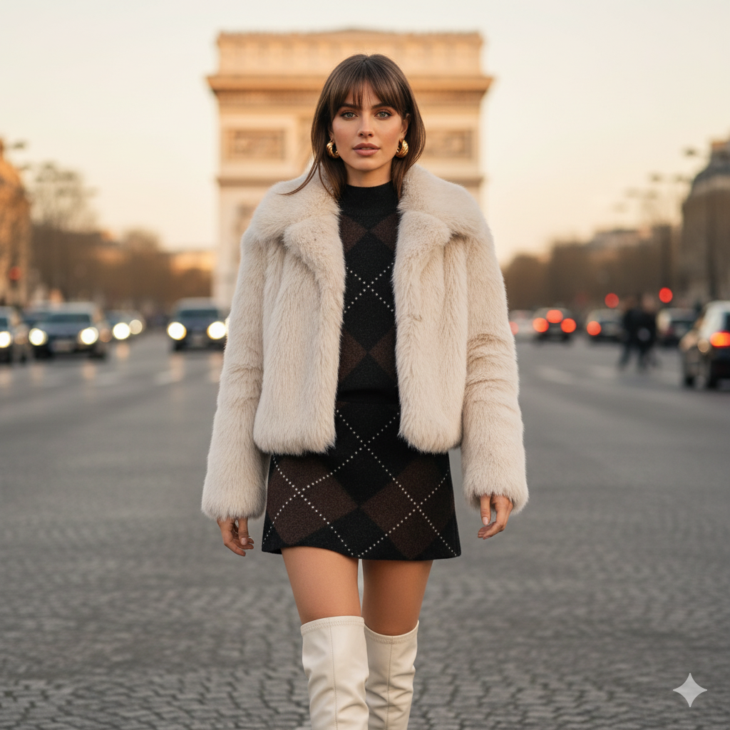 Une silhouette chaleureuse et raffinée, pensée pour sublimer le quotidien. Matières douces, lignes féminines et accessoires délicats composent un look confortable et élégant, facile à porter au quotidien.