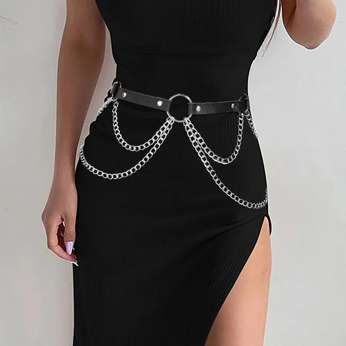 Ceinture harnais effet cuir avec chaîne – style gothique moderne