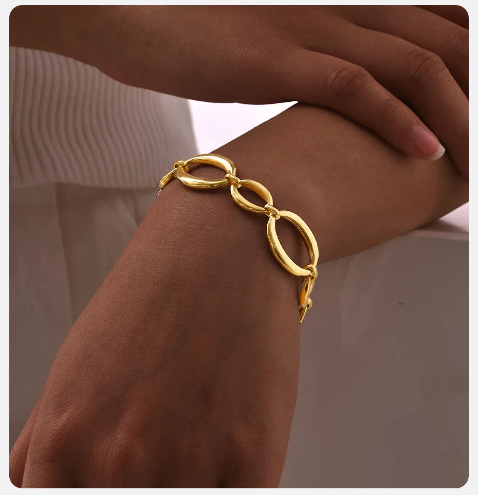Ce bracelet à maillons ovales séduit par son design épuré et intemporel, pensé pour accompagner toutes vos tenues avec discrétion et élégance.